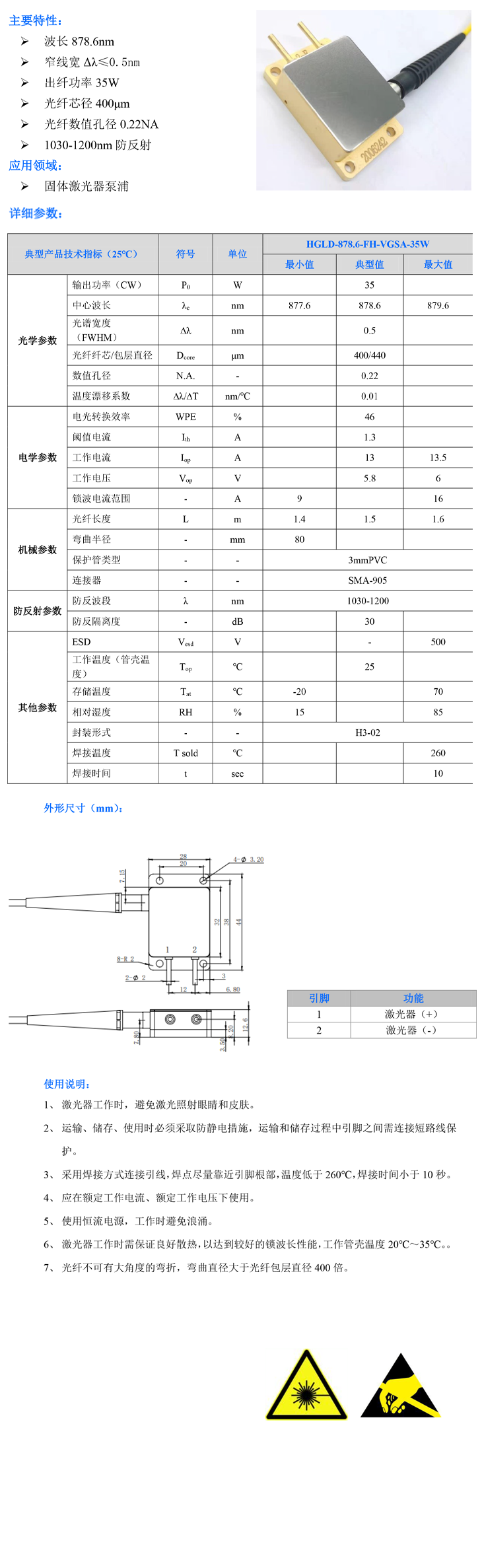波长878.6nm-35W-FH-A435-12 立即咨询