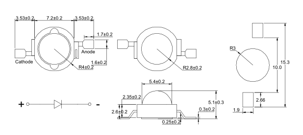不建议将LED 贴装在弯曲的线路板上。焊接时避免快速冷却,在LED 焊接冷却过程中避免任何形式的机械力或过度震动,焊接后,不要弯曲线路板。在返修或单颗材料作业时,不能用镊子挤压胶体表面,由于硅胶相对较软,用镊子挤压胶体会导致断线,压伤晶片,从而死灯。