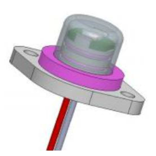 本模组底部带法兰边及两个安装孔,适用于空气和液体抑菌的静态UVC LED抑菌模组; 开孔尺寸建议 16.7±0.3 mm。