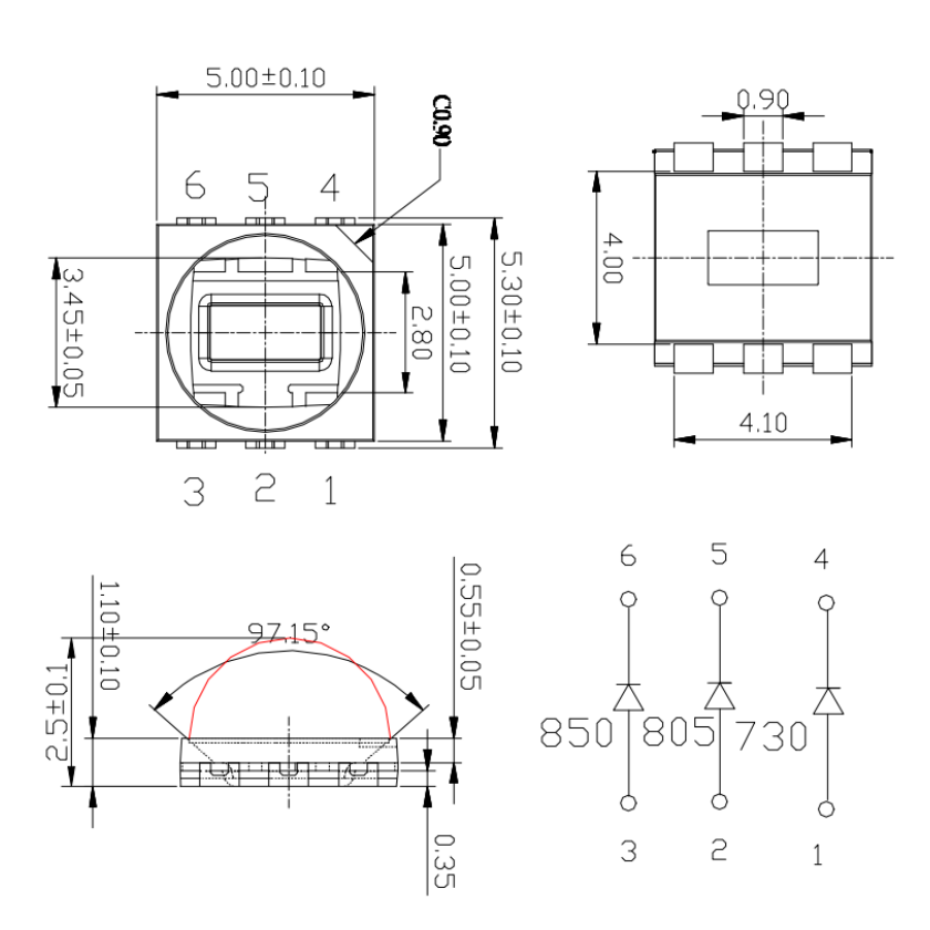 脑前额医疗红外led灯珠 5050灯珠三芯735+805+850nm贴片发光二极管 医疗led光源 立即咨询