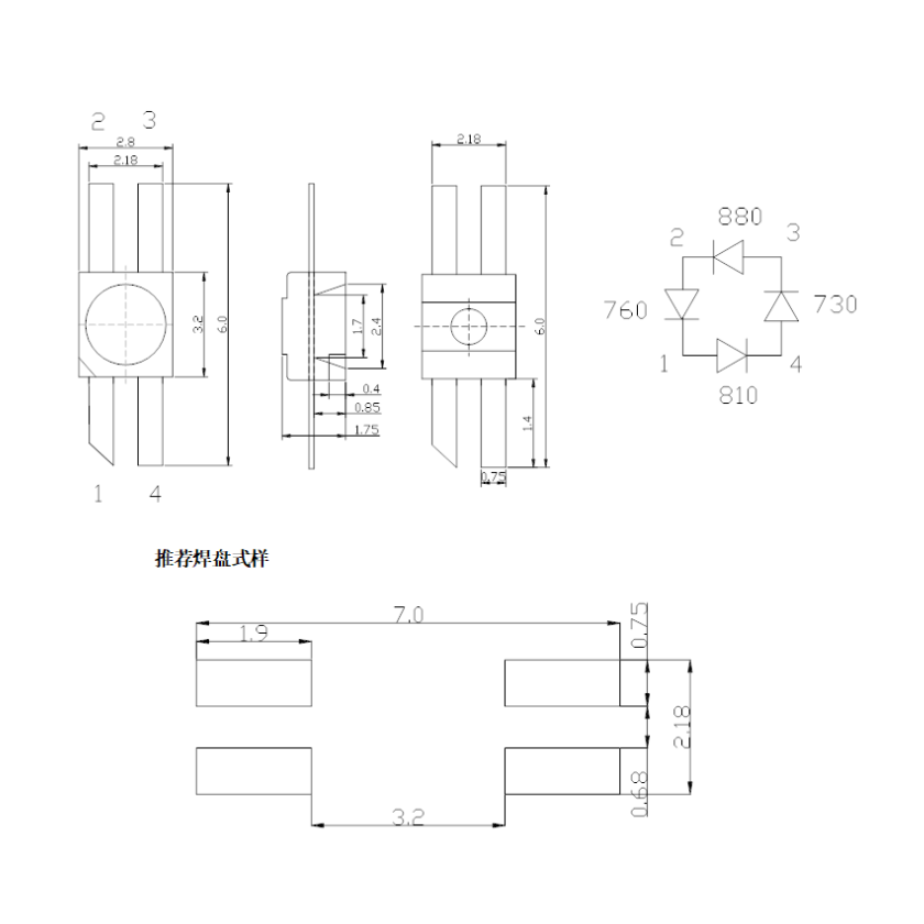 6028反贴片led 红光红外四芯灯珠脑部神经衰弱灯珠3528四脚反贴 立即咨询