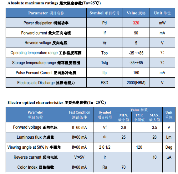 注:产品发光颜色、亮度、色温、均可按客户要求做货。